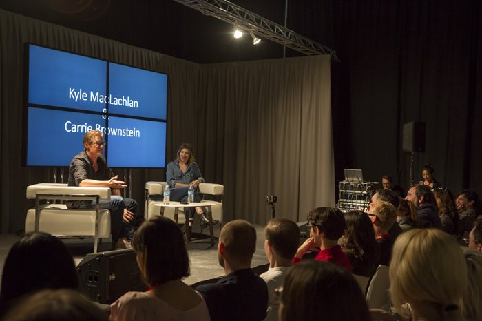 Actors Kyle MacLachlan and Carrie Brownstein speaking at the 2016 Seattle Art Fair