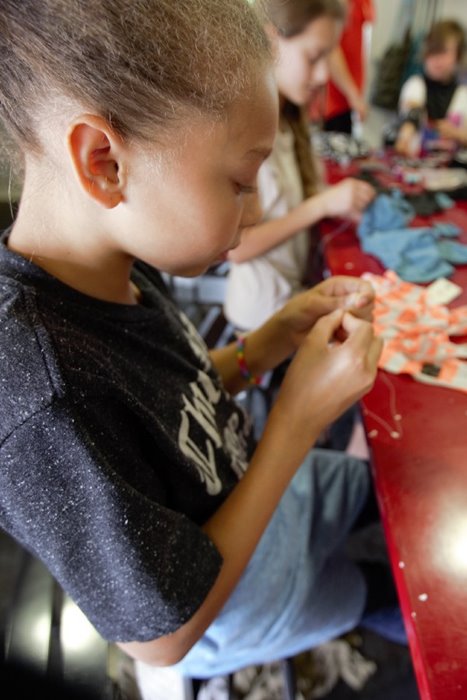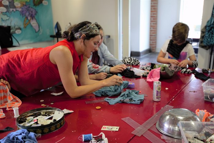 Students learn to sew during a fashion course at Coyote Central.