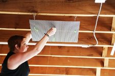 Left: Gallery manager, Judith Rinehart, attaches a hanging mechanism to the ceiling as Gardner prepares to hang the clusters. "I didn't want them to be perfect, but I wanted them to be perceived as light," Gardner said. Ironing out technical issues, such as maintaining "lightness" and minimizing the support system, was a surprising challenge, she said.