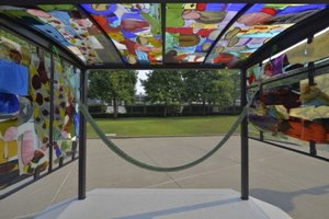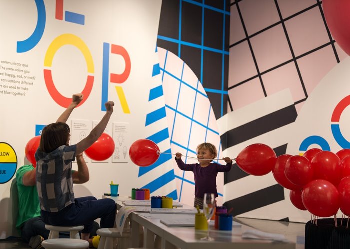 A child plays in See / Saw, a visual communication station built by Civilization and Fruitsuper.
