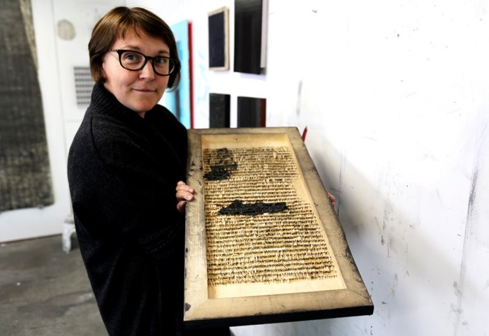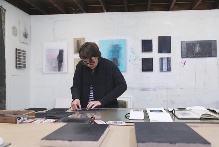 Gherard working in her North Seattle studio.